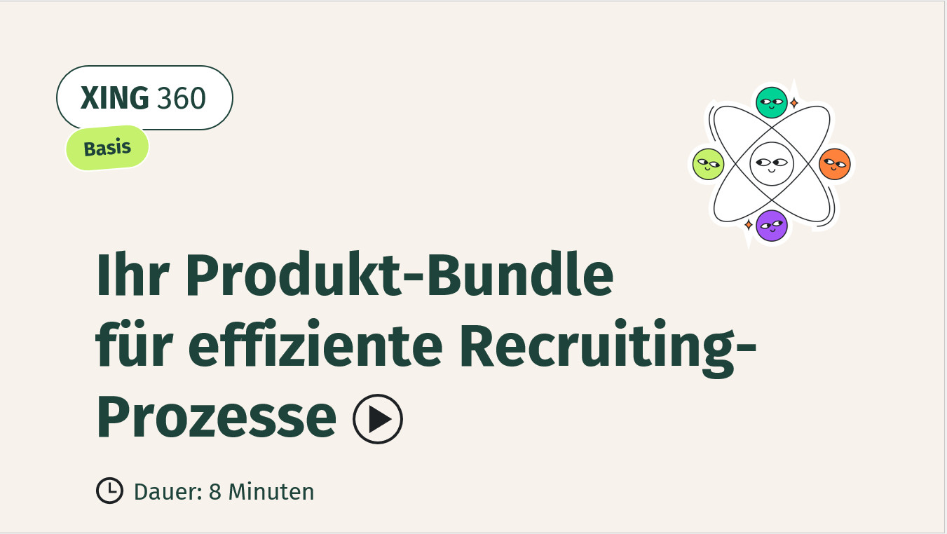 Sie haben gerade mit XING 360 begonnen? In diesem Einführungstraining geben wir Ihnen einen fundierten Überblick über die verschiedenen XING Recruiting-Lösungen, die in Ihrem Paket enthalten sind. Gemeinsam erkunden wir, wie die einzelnen Tools miteinander interagieren und Sie erhalten wertvolle Tipps und Best Practices für die Nutzung.