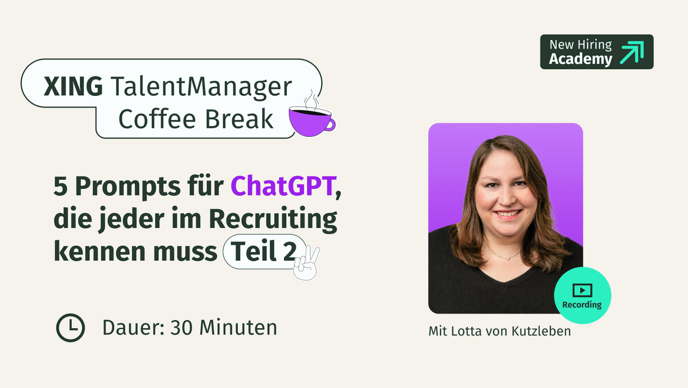 In unsererem 30-minütigen Coffee Break erfahren Sie, wie Sie mit cleveren ChatGPT-Prompts jeden Schritt im Recruitingprozess optimieren – vom ersten Briefing bis zur perfekten Candidate Experience.