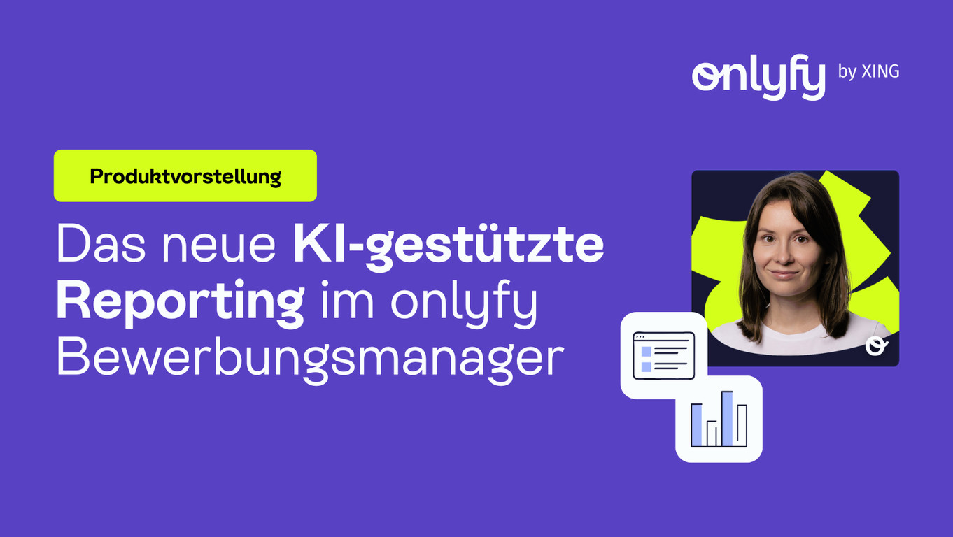 Mit dem neuen KI-gestützten Reporting im onlyfy Bewerbungsmanager leiten Sie aus Ihren Kennzahlen konkrete Maßnahmen ab.